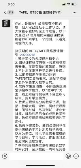 三是及时总结,全面提升学生能力。对外合作办学充分发挥班干部的作用,各班班长和学习委员根据授课计划和相关的网络课程,整合后为班上制定统一的每周学习任务,协助任课教师督促同学们的网络学习,及时提交作业。线上教学正式开始后,对外合作办学的授课教师以能够帮助学生能力达到TAFE/BTEC资质要求,满足学校要求及外审要求为根本目的,以“学生为中心”,线上内容传授与线下自主练习结合,充分发挥学生主动性,提升学生能力。