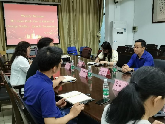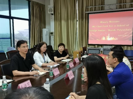 4月19日,马来西亚跨境电商协会主席陈福义先生来2138cn太阳集团城进行交流访问。学院领导宁顺青书记、副院长王宾香、关浩宇,副书记朱娉婷,学院办公室、跨境电商教研室、应用英语专业和实训中心负责人,学校办公室相关老师出席会议。