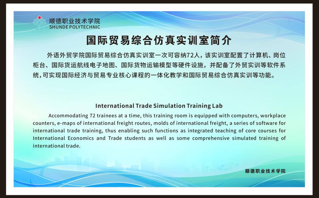 上一条:5-3-501跨境电商实训室 下一条:5-7-203国际商务情景模拟实训室